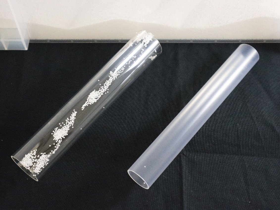 弊社では、帯電防止ABS樹脂を使用し、帯電防止性能と適度な光透過性を兼ね備えたパイプを成形しています。 |