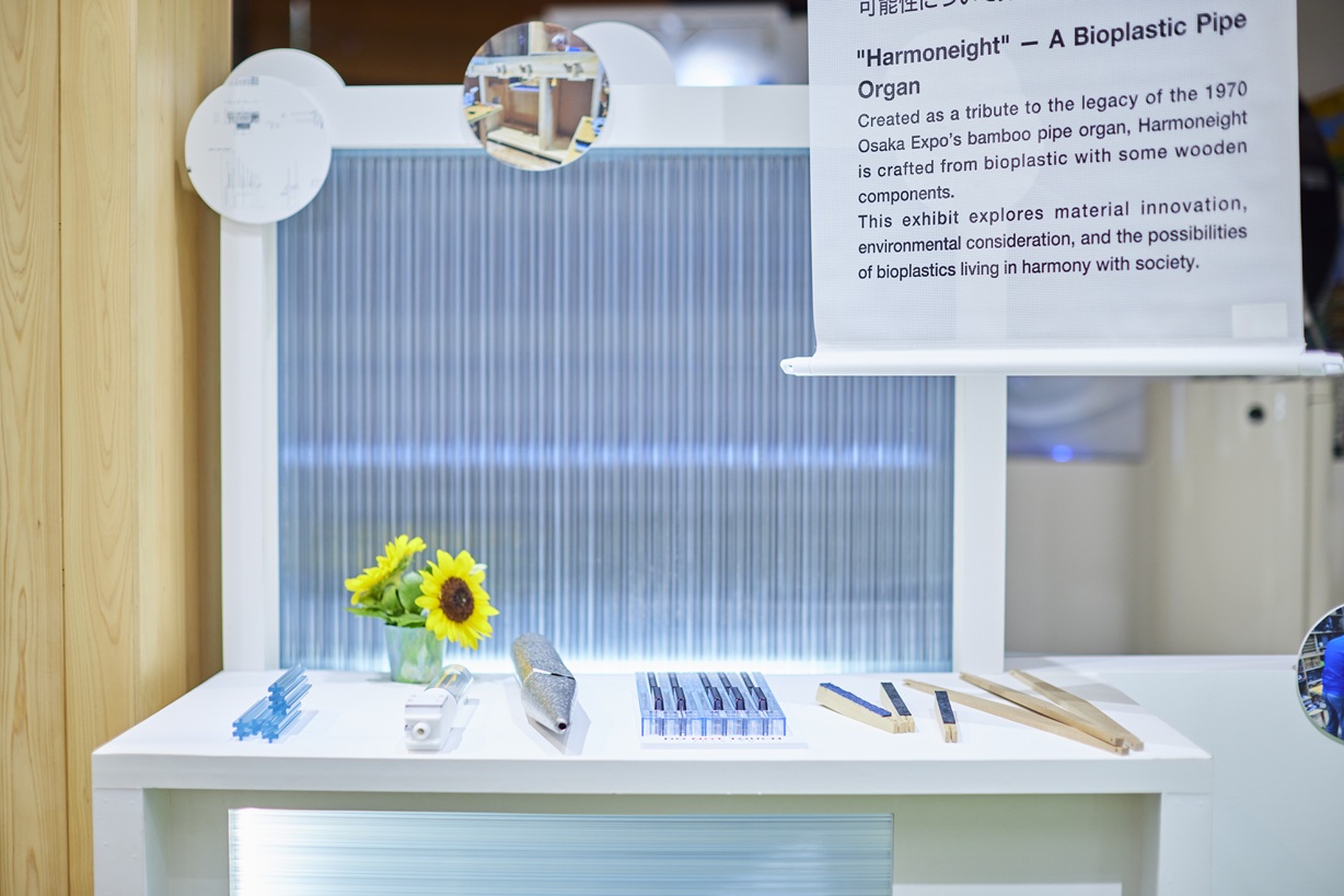 2025年大阪・関西万博『大阪ヘルスケアパビリオン・リボーンチャレンジ』において、環境に配慮した展示物として、世界初のバイオプラスチック製パイプオルガン『ハーモネイト』が披露されました(期間:8月19日~25日まで)。 バイオプラスチック製パイプオルガンは、プラスチック成形メーカー8社(*1)が協業プロジェクトで制作したものです。このパイプオルガンに弊社のバイオポリカーボネート製パイプを採用いただきました。 (*1) 旭化工株式会社、株式会社泉製作所、角一化成株式会社、サカエ株式会社、佐原化学工業株式会社、 株式会社三共プラス、株式会社昭栄精化工業、有限会社不動プラスチックス製作所 |